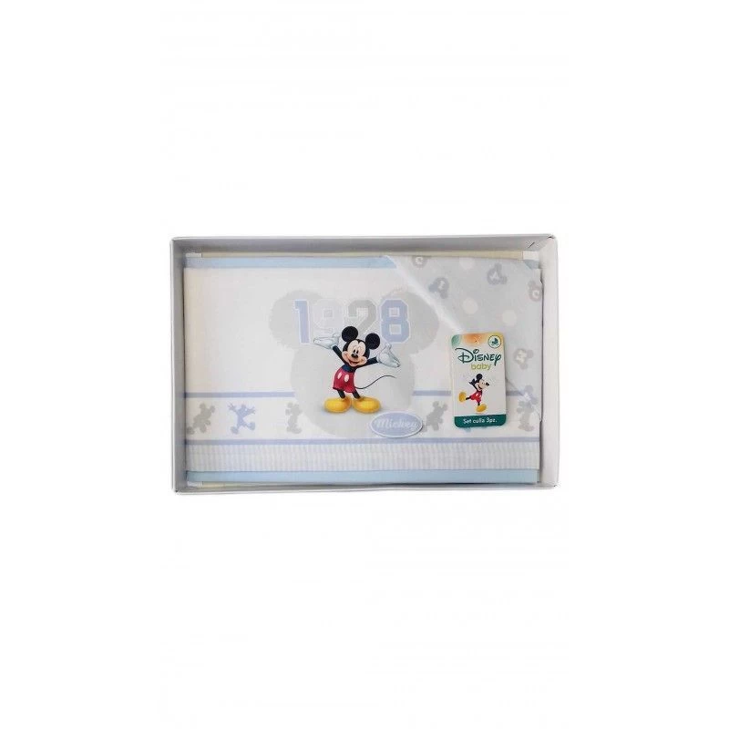 Completo 3pz Culla Carrozzina Bimbo Neonato Lenzuolo Stampa Mickey Disney Baby Bianco Cielo TU