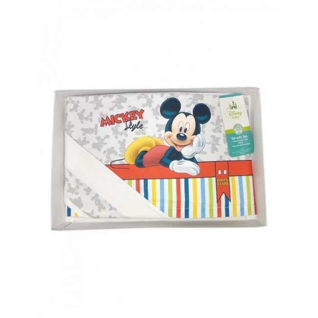 Completo 3pz Culla Lettino Bimbo Neonato Lenzuolo Stampa Mickey Disney Baby Bianco Rosso TU